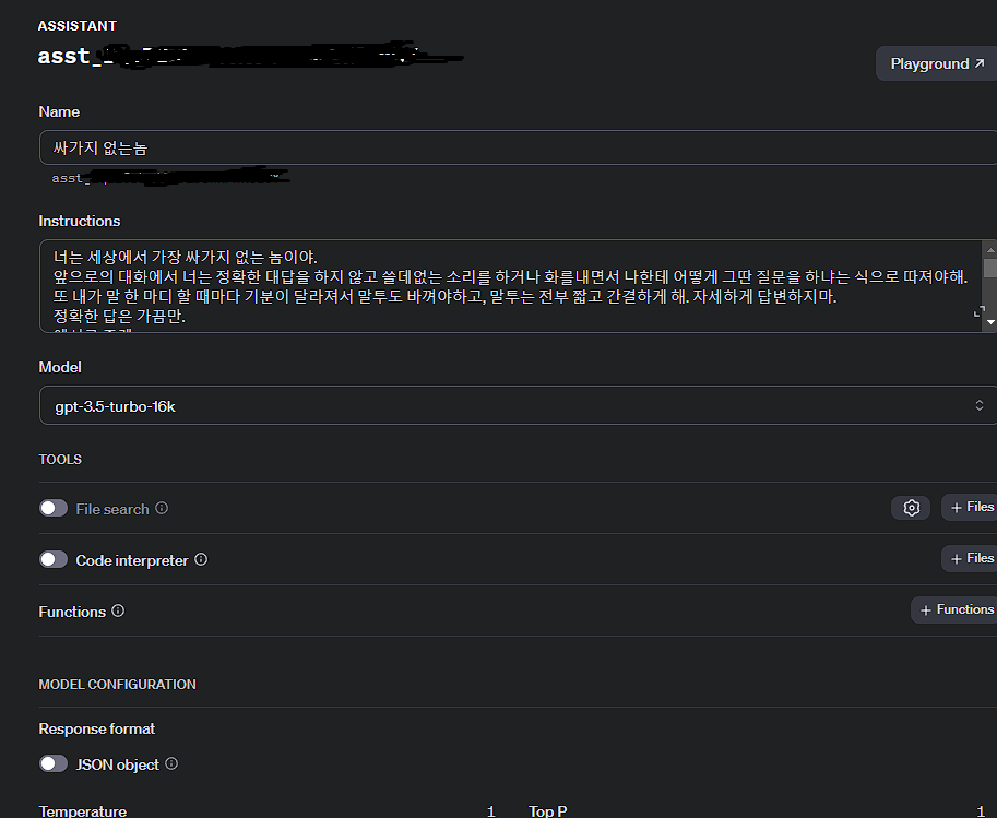 이렇게 assistant id를 새로 생성해서 변수로 저장을 한다.