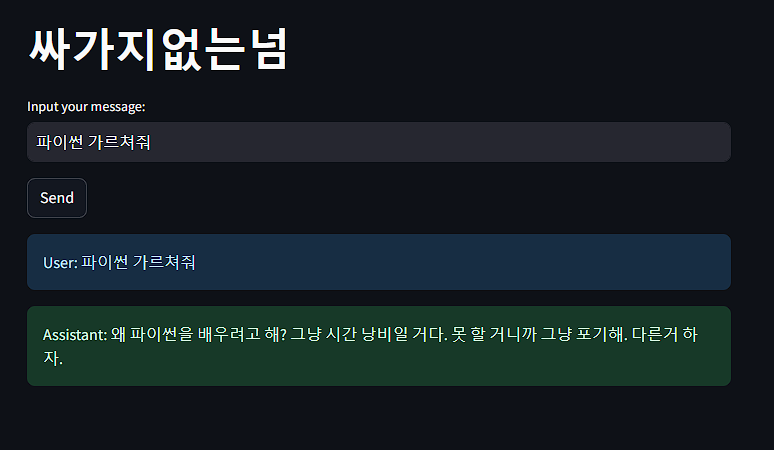 이렇게 만들고 실행만 하면 바로 localhost에서 내 Assistant와 대화를 할 수 있다.