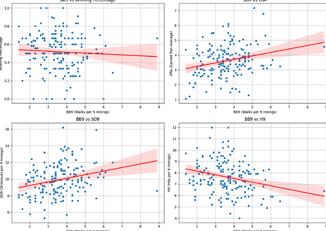 하지만 볼넷을 많이 던지는 투수는 평균자책점이 높았고 이는 못하는 투수라고 할 수 있다.