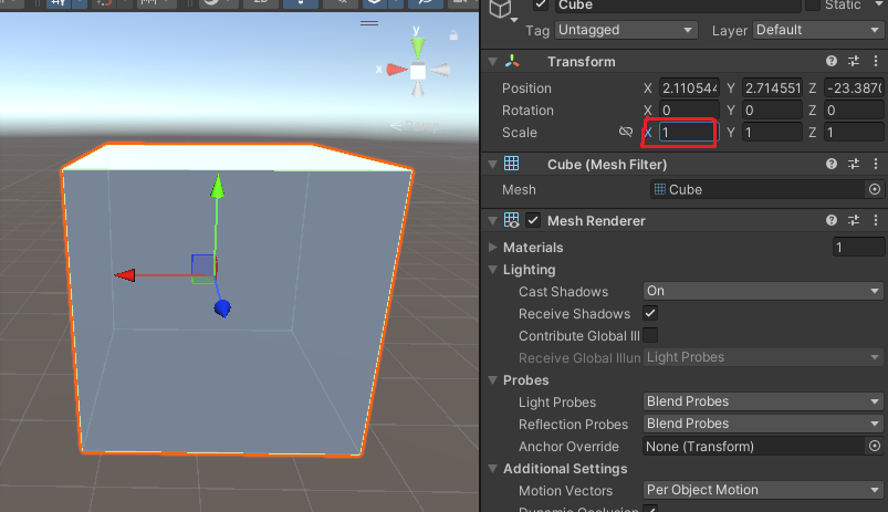 기본적으로 Scale 값이 1일 때나 -1일 때나 겉으로 보이는 크기는 달라지지 않는다.