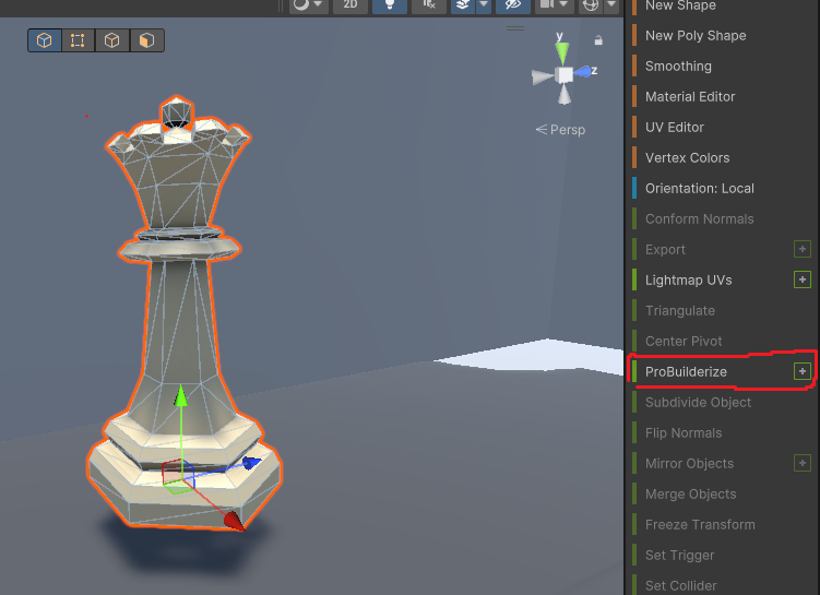 ProBuilderlize 는 오브젝트를 ProBuilder에서 수정 가능한 오브젝트로 변환 시켜주는 기능이다.