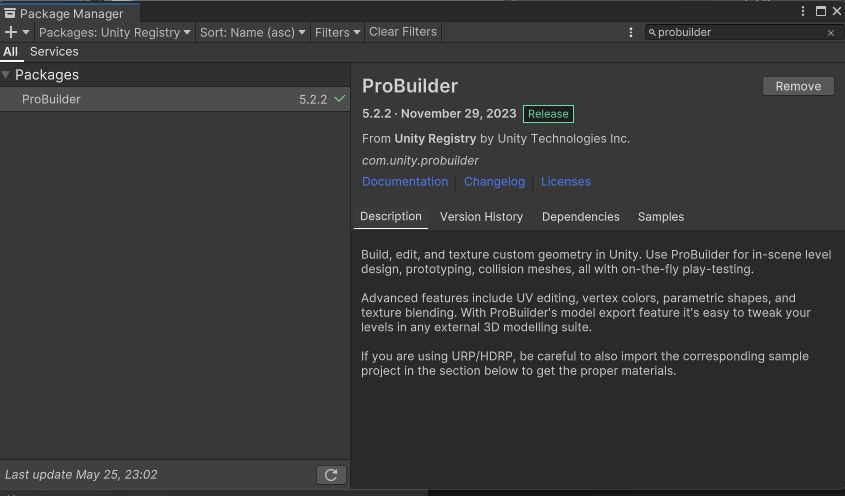 Package Manager에서 다운 받을 수 있는 ProBuilder 패키지를 이용하는 방법이다.