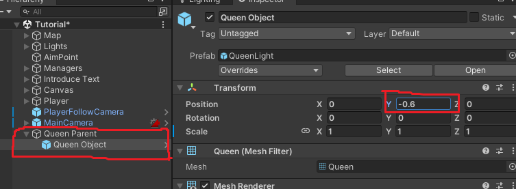 현재 퀸은 바닥에 Pivot이 있다.